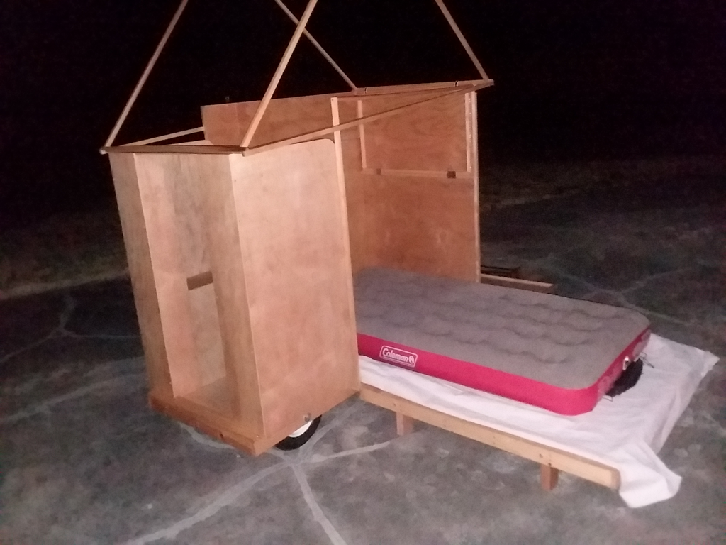 If you buy now, it will be the second one we ever made, so you'll have to help us decide what changes to make, what materials to build from (the plywood we used on the first one turned out to be toxic), and the price can be negotiated based on the cost of materials. But we do need at least enough money to build a second one for a homeless person - that is non-negotiable.